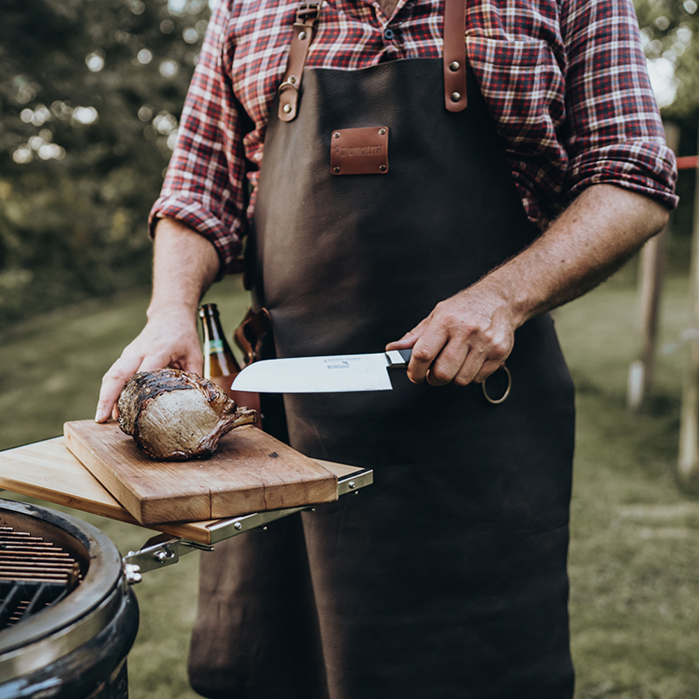 Le tablier en cuir MONOLITH, fabriqué à la main, est un must-have. Fabriqué à 100% en cuir véritable, ce tablier représente une option robuste et durable, parfaite pour les longues sessions de barbecue. Grâce à un traitement spécial, le cuir est particulièrement souple et léger, ce qui rend le tablier agréable à porter. La sangle de cou et la ceinture sont réglables, ce qui permet d’obtenir un ajustement optimal. Le tablier protège surtout parfaitement contre les projections de graisse et les étincelles, car le cuir est difficilement inflammable – un énorme avantage par rapport aux tabliers en coton.